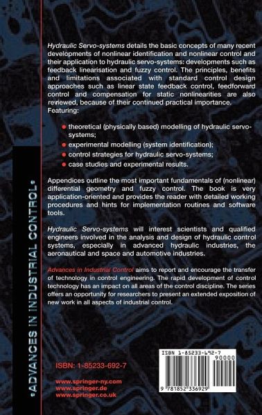 Hydraulic Servo-systems details the basic concepts of many recent developments of nonlinear identification and nonlinear control and their application to hydraulic servo-systems: developments such as feedback linearisation and fuzzy control. It also reviews the principles, benefits and limitations associated with standard control design approaches such as linear state feedback control, feedforward control and compensation for static nonlinearities, because of their continued practical importance. Featuring: theoretical (physically based) modelling of hydraulic servo-systems; experimental modelling (system identification); control strategies for hydraulic servo-systems; case studies and experimental results. Appendices outline the most important fundamentals of (nonlinear) differential geometry and fuzzy control. The book is very application-oriented and provides the reader with detailed working procedures and hints for implementation routines and software tools.