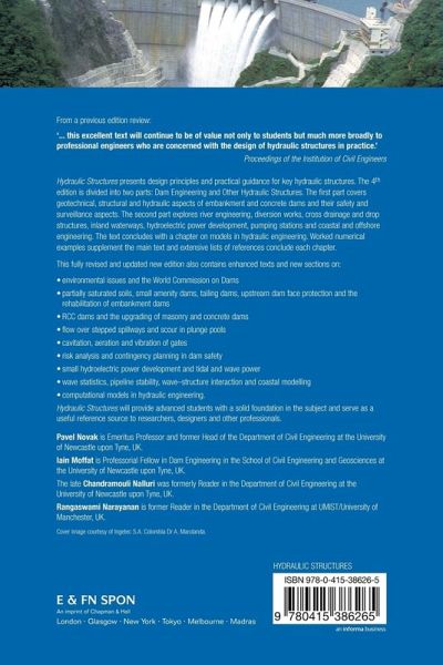 Professor Pavel Novak is Emeritus Professor and former Head of the Department of Civil Engineering at the University of Newcastle upon Tyne, UK Professor Iain Moffat is Professorial Fellow in Dam Engineering in the School of Civil Engineering and Geosciences at the University of Newcastle upon Tyne, UK The late Dr Chandramouli Nalluri was formerly Reader in the Department of Civil Engineering at the University of Newcastle upon Tyne, UK Dr Rangaswami Narayanan is former Reader in the Department of Civil Engineering at UMIST/University of Manchester, UK