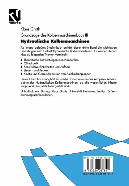 Studienbuch zum Lehrfach Kolbenmaschinen und Hydraulik Dieser dritte Band der Reihe "Grundzüge des Kolbenmaschinenbaus" enthält in der knappen Form eines Studienbuches die Inhalte von Pumpenbau und Ölhydraulik. Dabei werden konstruktive, mechanische und akustische Aspekte beachtet. Berechnungen, Auslegungen und Schwingungsprobleme runden das Buch ab.