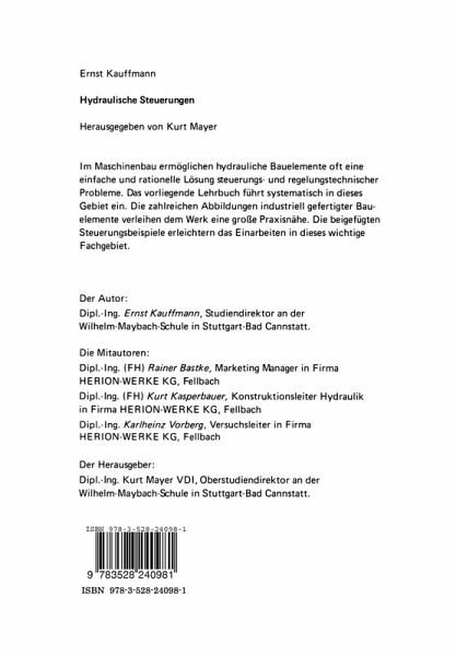 Die wirtschaftliche Notwendigkeit, in allen Bereichen der industriellen Fertigung auto matisierte Verfahren und Prozesse einzusetzen, zwingt Facharbeiter, Techniker und Ingenieure, sich mit den flir die automatisierten Fertigungsprozesse notwendigen Tech niken zu befassen. Dies verlangt Kenntnis und Wissen iiber das Gebiet der Steuerungs und Regelungstechnik. In diesem Sinne soil das vorliegende Fachbuch als eine Informa tionsquelle flir ein wichtiges Teilgebiet der Steuerungstechnik dienen. Die Hydraulik als ein wesentlicher Teil der Fluidtechnik befaBt sich mit der Steuerung und Obertragung von Kraften und Bewegungen mittels Fliissigkeiten. Entsprechend unter scheidet man deshalb in der Technik zwischen hydraulischen Steuerungen und hydrau lischen Antrieben, letztere wiederum in hydrostatische und hydrodynamische Antriebe. Da auch bei den hydraulischen Steuerungen iiberwiegend die GesetzmaBigkeiten der Hydrostatik Anwendung finden, sind Gemeinsamkeiten mit hydrostatischen Antrieben gegeben. Die hydraulischen Steuerungen und Antriebe bieten oft die beste Mbglichkeit, Bewegun gen beim automatisierten Fertigungsvorgang optimal zu realisieren. Insbesondere lassen sich durch Stetigventile Geschwindigkeiten und Krafte bzw. Drehmomente dem Ferti gungsprozeB exakt anpassen. Bei der Uberarbeitung dieses Buches wurde deshalb neben der Anpassung der Schalt plane an das jetzt giiltige Normblatt fUr Schaltzeichen der fluid is chen Gerate und Systeme (DIN ISO 1219) auch das Kapitel Proportionalventile neu aufgenommen. Diese Bauarten der Stetigventile sind eine preiswerte und robuste Alternative zu den Servoventilen und sie haben der Hydraulik neue Bereiche erschlossen. Fellbach, Dezember 1987 Ernst Kauffmann IV Inhaltsverzeichnis 1 Grundlagen der Steuerungstechnik .............................. .