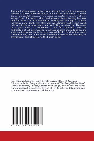 The pond effluents need to be treated through bio pond or wastewater treatment process before releasing to the outside environment to prevent the natural coastal resources from hazardous substances coming out from shrimp farms. The way in which semi intensive shrimp farming has been practiced here is no way environment friendly and no longer to sustain. Increasing pond depth year after year will ultimately make these ponds neither suitable for aquaculture, nor land filling or other use. There may be a great threat of salinization of soil and freshwater resources, acidification of soil, accumulation of obnoxious gases into soil and ground water contamination due to increase in pond depth. If such culture system is followed very soon it will create tremendous pressure on land area, on environment, and ultimately, to the human being.