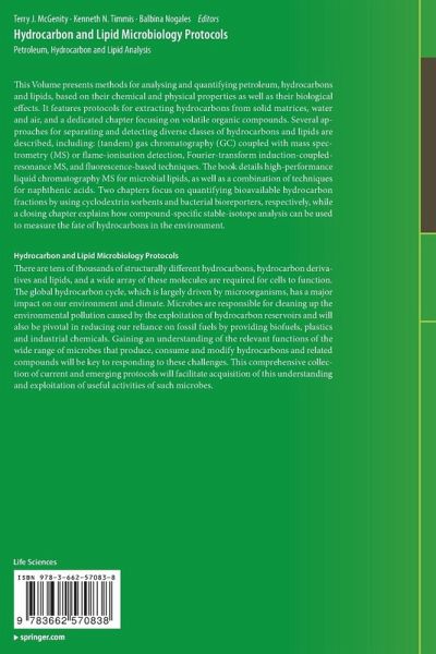There are tens of thousands of structurally different hydrocarbons, hydrocarbon derivatives and lipids, and a wide array of these molecules are required for cells to function. The global hydrocarbon cycle, which is largely driven by microorganisms, has a major impact on our environment and climate. Microbes are responsible for cleaning up the environmental pollution caused by the exploitation of hydrocarbon reservoirs and will also be pivotal in reducing our reliance on fossil fuels by providing biofuels, plastics and industrial chemicals. Gaining an understanding of the relevant functions of the wide range of microbes that produce, consume and modify hydrocarbons and related compounds will be key to responding to these challenges. This comprehensive collection of current and emerging protocols will facilitate acquisition of this understanding and exploitation of useful activities of such microbes.