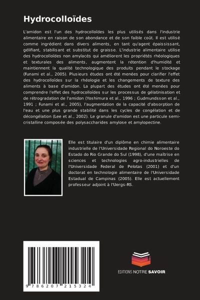 L'amidon est l'un des hydrocolloïdes les plus utilisés dans l'industrie alimentaire en raison de son abondance et de son faible coût. Il est utilisé comme ingrédient dans divers aliments, en tant qu'agent épaississant, gélifiant, stabilisant et substitut de graisse. L'industrie alimentaire utilise des hydrocolloïdes non amylacés qui améliorent les propriétés rhéologiques et texturales des aliments, augmentent la rétention d'humidité et maintiennent la qualité technologique des produits pendant le stockage (Funami et al., 2005). Plusieurs études ont été menées pour clarifier l'effet des hydrocolloïdes sur la rhéologie et les changements de texture des aliments à base d'amidon. La plupart des études ont été menées pour comprendre l'effet des hydrocolloïdes sur les processus de gélatinisation et de rétrogradation de l'amidon (Yoshimura et al., 1996 ; Gudmundsson et al., 1991 ; Funami et al., 2005), l'augmentation de la capacité d'absorption de l'eau et une plus grande stabilité dans les cycles de congélation et de décongélation (Lee et al., 2002). Le granule d'amidon est une particule semi-cristalline composée des polysaccharides amylose et amylopectine.
