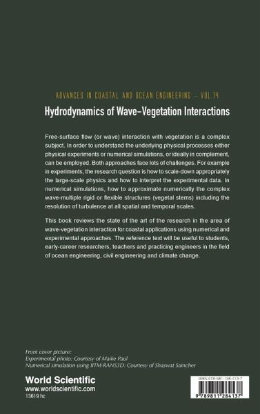 Free-surface flow (or wave) interaction with vegetation is a complex subject. In order to understand the underlying physical processes either physical experiments or numerical simulations, or ideally in complement, can be employed. Both approaches face lots of challenges. For example in experiments, the research question is how to scale-down appropriately the large-scale physics and how to interpret the experimental data. In numerical simulations, how to approximate numerically the complex wave-multiple rigid or flexible structures (vegetal stems) including the resolution of turbulence at all spatial and temporal scales. This book reviews the state of the art of the research in the area of wave-vegetation interaction for coastal applications using numerical and experimental approaches. The reference text will be useful to students, early-career researchers, teachers and practicing engineers in the field of ocean engineering, civil engineering and climate change.
