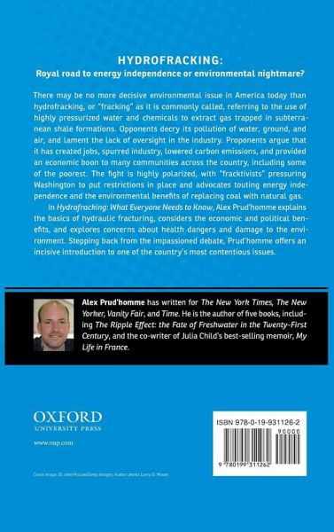 Constantly in the news and the subject of much public debate, fracking, as it is known for short, is one of the most promising yet controversial methods of extracting natural gas and oil. Today, 90 percent of natural gas wells use fracking. Though highly effective, the process-which fractures rock with pressurized fluid-has been criticized for polluting land, air, and water, and endangering human health. A timely addition to Oxford's What Everyone Needs to Know series, Hydrofracking tackles this contentious topic, exploring both sides of the debate and providing a clear guide to the science underlying the technique. In concise question-and-answer format, Alex Prud'homme cuts through the maze of opinions and rhetoric to uncover key points, from the economic and political benefits of fracking to the health dangers and negative effects on the environment. Prud'homme offers clear answers to a range of fundamental questions, including: What is fracking fluid? How does it impact water supplies? Who regulates the industry? How much recoverable natural gas exists in the U.S.? What new innovations are on the horizon? Supporters as diverse as President Obama and the conservative billionaire T. Boone Pickens have promoted natural gas as a clean, "21st-century" fuel that will reduce global warming, create jobs, and provide tax revenues, but concerns remain, with environmental activists like Bill McKibben and others leading protests to put an end to fracking as a means of obtaining alternative energy. Prud'homme considers ways to improve methods in the short-term, while also exploring the possibility of transitioning to more sustainable resources-wind, solar, tidal, and perhaps nuclear power-for the long term. Written for general readers, Hydrofracking clearly explains both the complex science of fracking and the equally complex political and economic issues that surround it, giving readers all the information they need to understand what will no doubt remain a contentious issue for years to come.