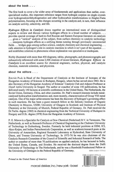 This book covers hydrogen effects in catalysis in the broadest sense, from surface science to industrial applications. It draws the attention of the catalysis community to the importance of the phenomena of hydrogen effects both in the science and technology of catalysis.