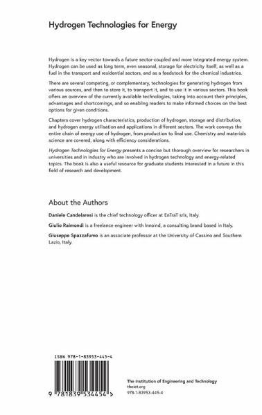 A systematic overview of hydrogen energy technologies: production, storage, transport and utilization; covering physical, chemical, electrochemical and materials related aspects, as well as environmental considerations. The work also addresses efficiencies, and key types of fuel cells.