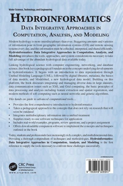 Modern hydrology is more interdisciplinary than ever. Staggering amounts and varieties of information pour in from GIS and remote sensing systems every day, and this information must be collected, interpreted, and shared efficiently. Hydroinformatics: Data Integrative Approaches in Computation, Analysis, and Modeling introduces the tools, approaches, and system considerations necessary to take full advantage of the abundant hydrological data available today. Linking hydrological science with computer engineering, networking, and database science, this book lays a pedagogical foundation in the concepts underlying developments in hydroinformatics. It begins with an introduction to data representation through Unified Modeling Language (UML), followed by digital libraries, metadata, the basics of data models, and Modelshed, a new hydrological data model. Building on this platform, the book discusses integrating and managing diverse data in large datasets, data communication issues such as XML and Grid computing, the basic principles of data processing and analysis including feature extraction and spatial registration, and modern methods of soft computing such as neural networks and genetic algorithms. Today, hydrological data are increasingly rich, complex, and multidimensional. Providing a thorough compendium of techniques and methodologies, Hydroinformatics: Data Integrative Approaches in Computation, Analysis, and Modeling is the first reference to supply the tools necessary to confront these challenges successfully.