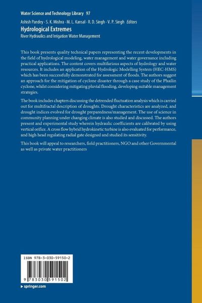 The book includes chapters discussing the detrended fluctuation analysis which is carried out for multifractal description of droughts. Drought characteristics are analyzed, and drought indices evolved for drought preparedness/management. The use of science in community planning under changing climate is also studied and discussed. The authors present and experimental study wherein hydraulic coefficients are calibrated by using vertical orifice. A cross flow hybrid hydrokinetic turbine is also evaluated for performance, and high head regulating radial gate designed and studied its sensitivity.