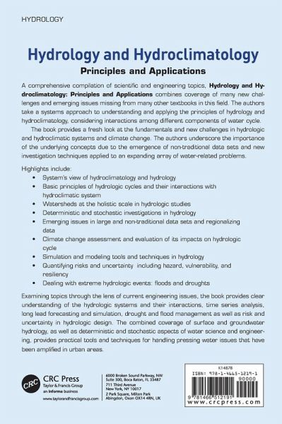 This book presents a systematic approach to understanding and applying the principles of hydrology and hydroclimatology, examining the interactions among different components of the water cycle. It takes a fresh look at the fundamentals and challenges in hydrologic and hydroclimatic systems as well as climate change. The author describes the application of nontraditional data sets and new investigation techniques to water-related problems. He also examines long lead forecasting and simulation, time series analysis, and risk and uncertainty in hydrologic design.