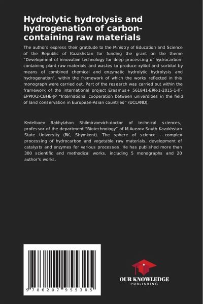 The authors express their gratitude to the Ministry of Education and Science of the Republic of Kazakhstan for funding the grant on the theme "Development of innovative technology for deep processing of hydrocarbon-containing plant raw materials and wastes to produce xylitol and sorbitol by means of combined chemical and enzymatic hydrolytic hydrolysis and hydrogenation", within the framework of which the works reflected in this monograph were carried out. Part of the research was carried out within the framework of the international project Erasmus+ 561841-ERR-1-2015-1-IT-EPPKA2-CBHE-JP "International cooperation between universities in the field of land conservation in European-Asian countries" (UCLAND).
