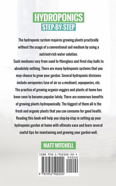 Have you ever wanted to grow plants without any soil or any sunlight? Everything you need is just reading this book! Gardening is a productive hobby. And one that, if done correctly, will yield you considerably more crops. Using creative gardening methods such as hydroponics will help your plants to grow faster while providing an improvement in yield. If you want to taste your homegrown food and see tremendous results, this guide is for you! A hydroponic growing system gives plants the possibility to grow anywhere in the globe. This book teaches you, with a step-by-step process, how to effectively build a hydroponic system, how to make use of it, how to plant and take care of it. In details you will find: Advantages and disadvantages of hydroponics Essential Plant Nutrient Elements Comprehensive equipment guide The types of systems that are available Step-by-step techniques for growing your own food Understand how to maintain your system and take after your plants With a wealth of insightful advice and practical approaches, you can now easily start your very own hydroponic garden! Learn all the fundamentals of hydroponic gardening and enjoy the benefits of homegrown plants without the soil and related requirements. Buy this book now to discover how to succeed with hydroponic gardens today!