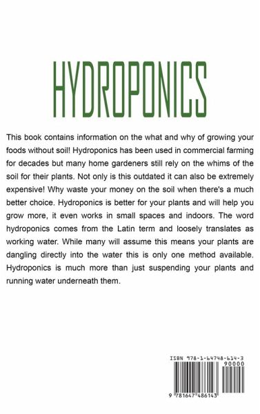 Hydroponics has Never Been Easier This book contains information on the what and why of growing your foods without soil! Hydroponics has been used in commercial farming for decades but many home gardeners still rely on the whims of the soil for their plants. Not only is this outdated it can also be extremely expensive! Why waste your money on the soil when there's a much better choice. Hydroponics is better for your plants and will help you grow more, it even works in small spaces and indoors. The word hydroponics comes from the Latin term and loosely translates as working water. While many will assume this means your plants are dangling directly into the water this is only one method available. Hydroponics is much more than just suspending your plants and running water underneath them. To be successful with it, you need to know how plants grow and how to spot those common problems unique to the method. A hydroponic garden is not only fruitful it's also a far more interesting way to work. Your friends and family will be amazed by what appears to be a magical system to grow your own foods without soil. Learn all you need to know to get started, even if you're just planning on testing it out with some strawberries. This book is for you. Packed with information such as pest control, different mediums, and why hydroponic methods will work for almost any crop. Within this book's pages, you'll find the answers to these questions and more. Just some of the questions and topics covered include What is Hydroponics Advantages of Hydroponics Types of Hydroponic Systems Plant Nutrition How Plants Grow Hydroponic Mediums Why Do Plants Need Light? Pests and Tests Don't hesitate to pick up your copy today by clicking the BUY NOW button at the top of this page!