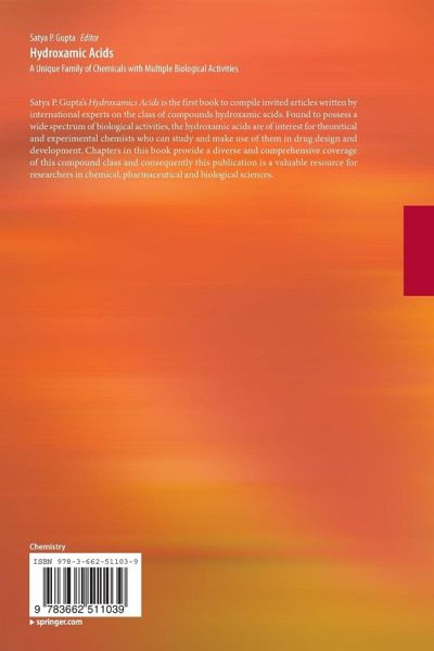 Chemistry of Hydroxamic Acids.- Theoretical Studies on Hydroxamic Acids.- Hydroxamic Acids as Carbonic Anhydrase Inhibitors.- Structure-Activity Relationships of Hydroxamic Acids as Matrix Metalloproteinase Inhibitors.- Hydroxamic Acid Derivatives as Anticancer Agents.- Hydroxamic Acids as Histone Deacetylase Inhibitors.- Quantitative Structure-Activity Relationship Studies on Hydroxamic Acids Acting as Histone Deacetylase Inhibitors.- Hydroxamic Acids as Carbonucleotide Reductase Inhibitors.- Hydroxamic Acids as Inhibitors of Urease in the Treatment of Helicobacter pylori Infections.- Therapeutic Potential of Hydroxamic Acids for Microbial Diseases.- Hydroxamic Acids as Chelating Mineral Collectors.