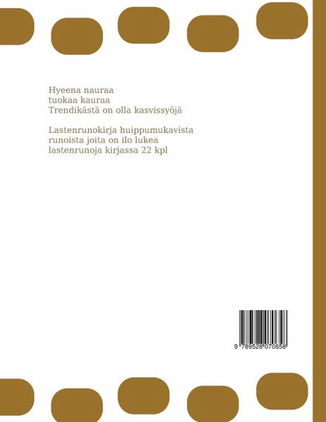 Hyeena nauraa tuokaa kauraa Trendikästä on olla kasvissyöjä Lastenrunokirja huippumukavista runoista joita on ilo lukea lastenrunoja kirjassa 22 kpl