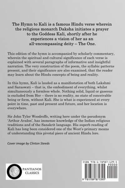 The Hymn to Kali is a famous Hindu verse wherein the religious monarch Daksha initiates a prayer to the Goddess Kali, shortly after he experiences a vision of her as an all-encompassing deity - The One. This edition of the hymn is accompanied by scholarly commentary, wherein the spiritual and cultural significance of each verse is explained with several paragraphs of informative and insightful narration. The very construction of the poem, the syllabic patterns present, and their significance are also examined, that the reader may learn about the Hindu concepts of being and reality. In this hymn, Kali is lauded as a manifestation of both Lakshmi and Saraswati - that is, the embodiment of everything, whilst simultaneously a formless whole. Nothing solid, liquid or gaseous is excluded from Her - there is no reality, no state of conceivable being or form, without Kali. She is what is experienced at every point in time, past and present and future, and her location is everywhere. Sir John Tyler Woodroffe, writing here under the pseudonym 'Arthur Avalon', has immense knowledge of the Indian religious traditions and of the Sanskrit language. His superb reading of Kali has long been considered one of the West's primary means of understanding this pivotal piece of ancient Hindu lore.