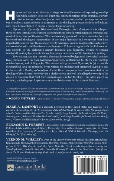Hymns and the music the church sings are tangible means of expressing worship. And while worship is one of, if not the, central functions of the church along with mission, service, education, justice, and compassion, and occupies a prime focus of our churches, a renewed sense of awareness to our theological presuppositions and cultural cues must be maintained to ensure a proper focus in worship. Hymns and Hymnody: Historical and Theological Introductions is a 60-chapter, three-volume introductory textbook describing the most influential hymnists, liturgists, and musical movements of the church. This academically grounded resource evaluates both the historical and theological perspectives of the major hymnists and composers that have impacted the church over the course of twenty centuries. Volume 1 explores the early church and concludes with the Renaissance era hymnists. Volume 2 begins with the Reformation and extends to the eighteenth-century hymnists and liturgists. Volume 3 engages nineteenth century hymnists to the contemporary movements of the twenty-first century. Each chapter contains these five elements: historical background, theological perspectives communicated in their hymns/compositions, contribution to liturgy and worship, notable hymns, and bibliography. The mission of Hymns and Hymnody is (1) to provide biographical data on influential hymn writers for students and interested laypeople, and (2) to provide a theological analysis of what these composers have communicated in the theology of their hymns. We believe it is vital for those involved in leading the worship of the church to recognize that what they communicate is in fact theology. This latter aspect, we contend, is missing--yet important--in accessible formats for the current literature.