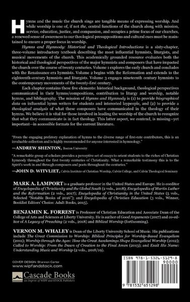 Hymns and the music the church sings in worship are tangible means of expressing worship. And while worship is one of, if not the central functions of the church along with mission, service, education, justice, and compassion, and occupies a prime focus of our churches, a renewed sense of awareness to our theological presuppositions and cultural cues must be maintained to ensure a proper focus in worship. Hymns and Hymnody: Historical and Theological Introductions is a sixty-chapter, three-volume introductory textbook describing the most influential hymnists, liturgists, and musical movements of the church. This academically grounded resource evaluates both the historical and theological perspectives of the major hymnists and composers who have impacted the church over the course of twenty centuries. Volume 1 explores the early church and concludes with the Renaissance era hymnists. Volume 2 begins with the Reformation and extends to the eighteenth-century hymnists and liturgists. Volume 3 engages nineteenth century hymnists to the contemporary movements of the twenty-first century. Each chapter contains these five elements: historical background, theological perspectives communicated in their hymns/compositions, contribution to liturgy and worship, notable hymns, and bibliography. The mission of Hymns and Hymnody is (1) to provide biographical data on influential hymn writers for students and interested laypeople, and (2) to provide a theological analysis of what these composers have communicated in the theology of their hymns. We believe it is vital for those involved in leading the worship of the church to recognize that what they communicate is in fact theology. This latter aspect, we contend, is missing--yet important--in accessible formats for the current literature.