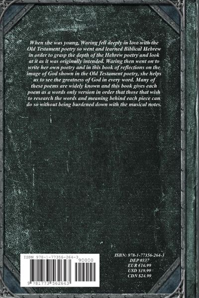 When she was young, Waring fell deeply in love with the Old Testament poetry so went and learned Biblical Hebrew in order to grasp the depth of the Hebrew poetry and look at it as it was originally intended. Waring then went on to write her own poetry and in this book of reflections on the image of God shown in the Old Testament poetry, she helps us to see the greatness of God in every word. Many of these poems are widely known and this book gives each poem as a words only version in order that those that wish to research the words and meaning behind each piece can do so without being burdened down with the musical notes.