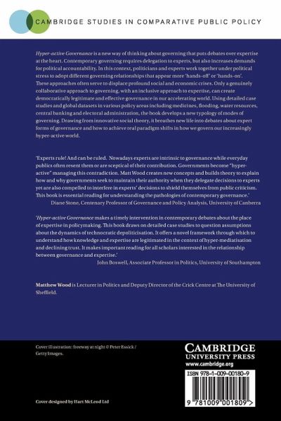 Part I. Introducing Hyper-active Governance: 1. The 'cult of the expert' 2. Managing the 'expert-politics nexus': a conceptual map Part II. Hyper-active Governance in Practice: 3. Defence: health technology assessment 4. Empowerment: emergency management and flooding governance 5. Inclusion: water resource governance 6. Defend, empower and include: hyper-active governance in monetary policy and electoral administration Part III. Theorising Hyper-active Governance: 7. Frenetically standing still: hyper-active governance and social acceleration 8. Experts, politics and co-production: the need to rethink political authority Appendices Endnotes References Index.