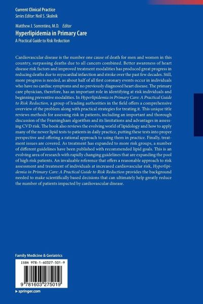"This is one of a number of books addressing the single topic of hyperlipidemia. The strength of this one lies in its extensive literature review and analysis. ... While this book is aimed at clinicians who commonly treat patients with hyperlipidemia, it is so well organized and easy to understand that it will be useful for laypersons who have been diagnosed with some component of hyperlipidemia ... . I highly recommend this book to all who treat patients with dyslipidemia." (Vincent F. Carr, Doody's Book Reviews, November, 2011)