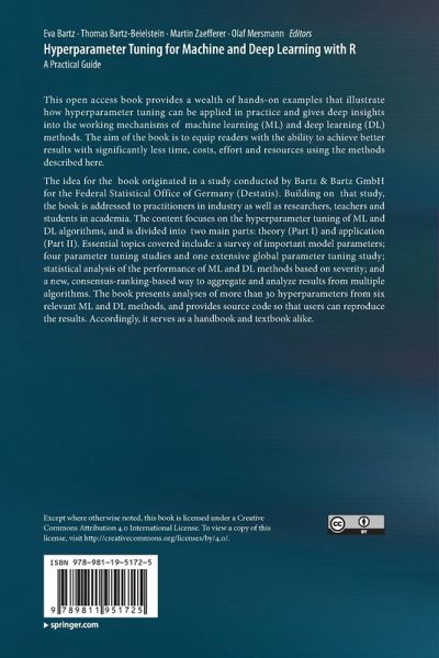 The idea for the book originated in a study conducted by Bartz & Bartz GmbH for the Federal Statistical Office of Germany (Destatis). Building on that study, the book is addressed to practitioners in industry as well as researchers, teachers and students in academia. The content focuses on the hyperparameter tuning of ML and DL algorithms, and is divided into two main parts: theory (Part I) and application (Part II).Essential topics covered include: a survey of important model parameters; four parameter tuning studies and one extensive global parameter tuning study; statistical analysis of the performance of ML and DL methods based on severity; and a new, consensus-ranking-based way to aggregate and analyze results from multiple algorithms. The book presents analyses of more than 30 hyperparameters from six relevant ML and DL methods, and provides source code so that users can reproduce the results. Accordingly, it serves as a handbook and textbook alike.