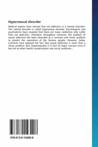 Please note that the content of this book primarily consists of articles available from Wikipedia or other free sources online. Medical experts have warned that sex addiction is a mental disorder! This mental disorder is called hypersexual disorder. Psychologists and psychiatrists have revealed that there are many celebrities who suffer from sex addiction. Therefore, throughout centuries, the problem of sexual addiction has been shrouded as a common and minor problem to protect the reputation of the famous people. However, today, scientists have exposed the fact that sexual addiction is more than a minor problem. But! Hypersexuality is in fact of major concern since it has led to other health complications and social problems...