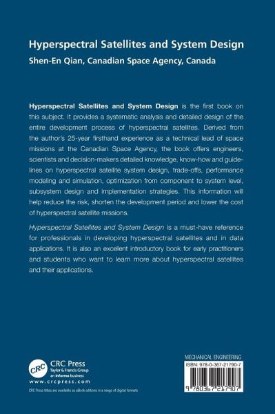 Hyperspectral Satellites and System Design is the first book on this subject. It provides a systematic analysis and detailed design of the entire development process of hyperspectral satellites. Derived from the author's 25-year firsthand experience as a technical lead of space missions at the Canadian Space Agency, the book offers engineers, scientists, and decision-makers detailed knowledge and guidelines on hyperspectral satellite system design, trade-offs, performance modeling and simulation, optimization from component to system level, subsystem design, and implementation strategies. This information will help reduce the risk, shorten the development period, and lower the cost of hyperspectral satellite missions. This book is a must-have reference for professionals in developing hyperspectral satellites and data applications. It is also an excellent introductory book for early practitioners and students who want to learn more about hyperspectral satellites and their applications.