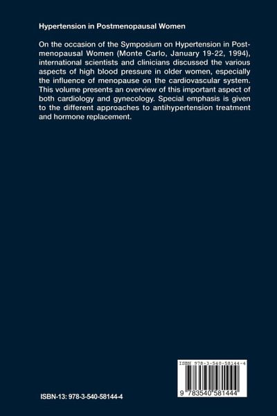 On the occasion of the symposium on Hypertension in Postmenopausal Women (Monte Carlo, January 19-22, 1994), international scientists and clinicians discussed the various aspects of high blood pressure in older women. This volume presents an overview of this important aspect of both cardiology and gynecology. Special emphasis is given to the different approaches to antihypertension treatment.