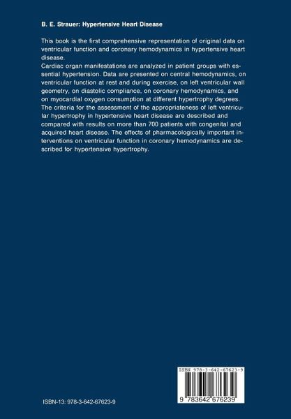 In the Federal Republic of Germany today there are 6 to 8 million hypertensive patients. Of them, 3 to 4 million show organic cardiac manifestations of hypertension. Of all deaths occurring before the age of 65, 40% are attributable to hypertension, and the total mortality from hypertension is about 25%. The high cardiac morbidity and mortality potential of the risk factor 'hyper tension' lies in the development of cardiac hypertrophy, heart failure and coronary artery disease. In addition, hypertensive patients are predisposed to develop secondary cardiac diseases. The aim of the present study was to analyse the myocardial function and coronary haemodynamics in essential hypertension, i. e. the most common type of pressure load imposed on the human heart. Consequently, the function and mode of operation of the hypertensive heart are described - a type of hypertrophy of the human heart which to date has almost been ignored in pathophysiology and diagnostics. On the basis of the findings, conclusions are drawn for the differential diagnosis and therapy of the hypertensive heart accompanied by hypertrophy, heart failure and coronary artery disease. This work was supported by Deutsche Forschungsgemeinschaft. The support in translating this manuscript by Petra Froschen, Christine Ebel and Cornelia Leisse is gratefully acknowledged.