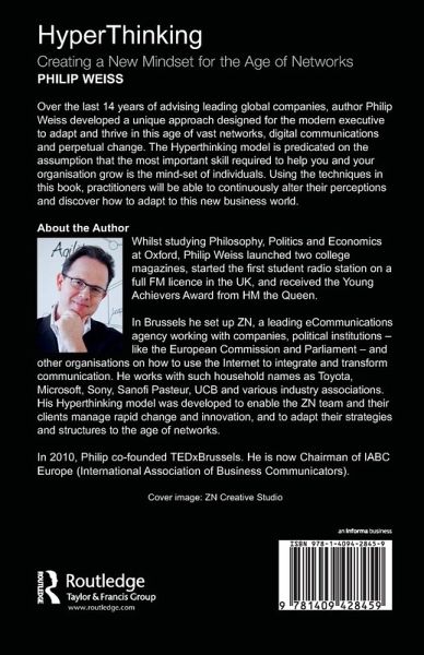Hyperthinking is predicated on the assumption that the single most important skill required to help you and your organization thrive in the age of perpetual change, digital communications and networks is the mind-set of individuals. This includes your values, your ability to learn and ability to adapt to change. After 14 years of experience with leading global companies, author Philip Weiss has developed an approach that pulls together the ingredients needed for the modern executive to both adapt and thrive in this new age. The Hyperthinking model has been developed and tested on teams, clients and the author's networks with great success. The book explains how Hyperthinking can apply to different facets of our lives, starting from our personal experience and our role in society and shows how to adapt better to the new business world. Hyperthinking is a set of values and tools that, used in combination, enable individuals to embrace change develop their creativity and effectively engage in the digital age. It has been tested by a variety of business executives and helped them to understand change, as well as overcome fear or resistance to technology. Philip Weiss offers the perfect antidote to information overload; a wonderful blueprint for personal and organizational innovation; and a set of perspectives to help us all make sense of a fast-changing business environment. Read it and start Hyperthinking!