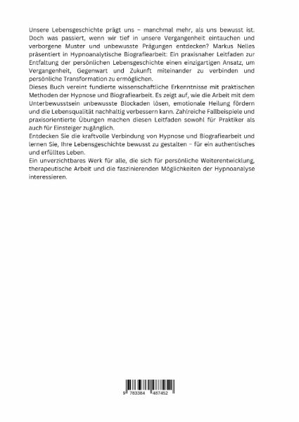 Unsere Lebensgeschichte prägt uns - manchmal mehr, als uns bewusst ist. Doch was passiert, wenn wir tief in unsere Vergangenheit eintauchen und verborgene Muster und unbewusste Prägungen entdecken? Markus Nelles präsentiert in Hypnoanalytische Biografiearbeit: Ein praxisnaher Leitfaden zur Entfaltung der persönlichen Lebensgeschichte einen einzigartigen Ansatz, um Vergangenheit, Gegenwart und Zukunft miteinander zu verbinden und persönliche Transformation zu ermöglichen.Dieses Buch vereint fundierte wissenschaftliche Erkenntnisse mit praktischen Methoden der Hypnose und Biografiearbeit. Es zeigt auf, wie die Arbeit mit dem Unterbewusstsein unbewusste Blockaden lösen, emotionale Heilung fördern und die Lebensqualität nachhaltig verbessern kann. Zahlreiche Fallbeispiele und praxisorientierte Übungen machen diesen Leitfaden sowohl für Praktiker als auch für Einsteiger zugänglich.Entdecken Sie die kraftvolle Verbindung von Hypnose und Biografiearbeit und lernen Sie, Ihre Lebensgeschichte bewusst zu gestalten - für ein authentisches und erfülltes Leben.Ein unverzichtbares Werk für alle, die sich für persönliche Weiterentwicklung, therapeutische Arbeit und die faszinierenden Möglichkeiten der Hypnoanalyse interessieren.