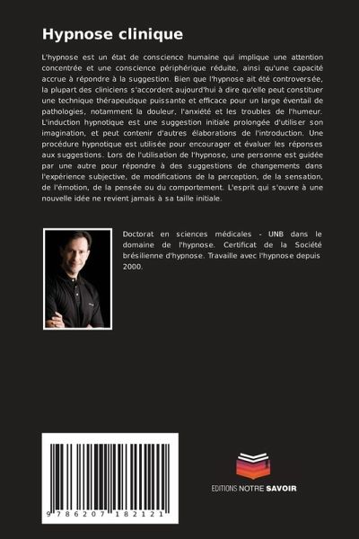 L'hypnose est un état de conscience humaine qui implique une attention concentrée et une conscience périphérique réduite, ainsi qu'une capacité accrue à répondre à la suggestion. Bien que l'hypnose ait été controversée, la plupart des cliniciens s'accordent aujourd'hui à dire qu'elle peut constituer une technique thérapeutique puissante et efficace pour un large éventail de pathologies, notamment la douleur, l'anxiété et les troubles de l'humeur. L'induction hypnotique est une suggestion initiale prolongée d'utiliser son imagination, et peut contenir d'autres élaborations de l'introduction. Une procédure hypnotique est utilisée pour encourager et évaluer les réponses aux suggestions. Lors de l'utilisation de l'hypnose, une personne est guidée par une autre pour répondre à des suggestions de changements dans l'expérience subjective, de modifications de la perception, de la sensation, de l'émotion, de la pensée ou du comportement. L'esprit qui s'ouvre à une nouvelle idée ne revient jamais à sa taille initiale.
