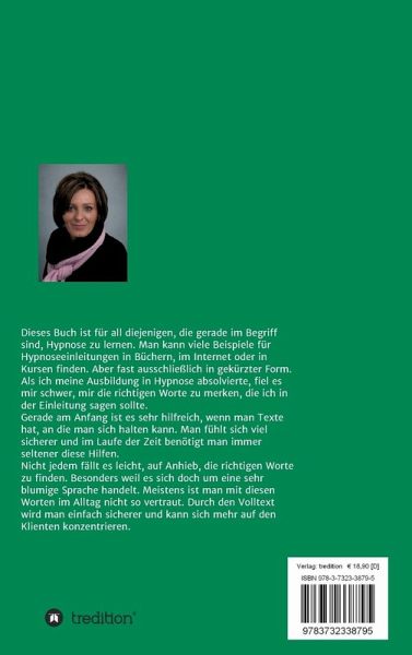 Dieses Buch ist für all diejenigen, die gerade im Begriff sind, Hypnose zu lernen. Man kann viele Beispiele für Hypnoseeinleitungen in Büchern, im Internet oder in Kursen finden. Aber fast ausschließlich in gekürzter Form. Als ich meine Ausbildung in Hypnose absolvierte, fiel es mir schwer mir die richtigen Worte zu merken die ich in der Einleitung sagen sollte. Gerade am Anfang ist es sehr hilfreich wenn man Texte hat, an die man sich halten kann. Man fühlt sich viel sicherer und im Laufe der Zeit benötigt man immer seltener diese Hilfen. Nicht jedem fällt es leicht, auf Anhieb, die richtigen Worte zu finden. Besonders weil es sich doch um eine sehr blumige Sprache handelt. Meistens ist man mit diesen Worten im Alltag nicht so vertraut. Durch den Volltext, wird man einfach sicherer und kann sich mehr auf den Klienten konzentrieren.