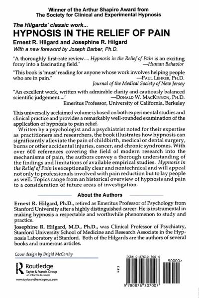 Written by a psychologist and a psychiatrist noted for their expertise as both practitioners and researchers, the book illustrates how hypnosis can significantly alleviate the pain of childbirth, medical or dental surgery, burns or other accidental injuries, cancer, and chronic syndromes.