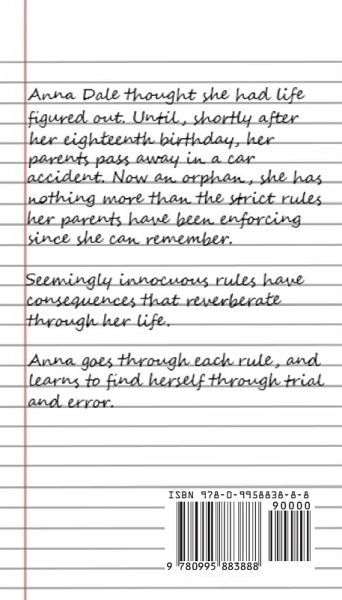 Anna's parents had strict rules for life. Suddenly, her parent's deadly accident throws her life in turmoil. She has nothing more than her parent's rules to go by, but she soon learns that maybe her parent's rules may be wrong for her.