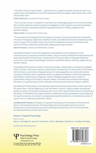 Using a recently developed theoretical framework called Hypothetical Thinking Theory, Jonathan St. B. T. Evans provides an integrated theoretical account of a wide range of psychological studies on hypothesis testing, reasoning, judgement and decision making.