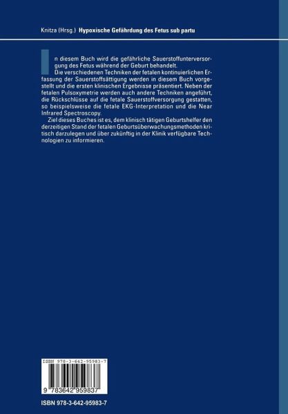 Ziel dieses Buches ist es, dem klinisch tätigen Geburtshelfer den derzeitigen Stand der fetalen Geburtsüberwachungsmethoden kritisch darzulegen und über zukünftig in der Klinik verfügbare Technologien zu informieren.