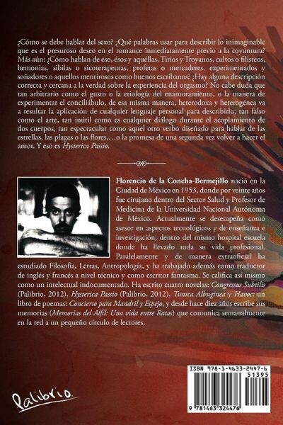 ¿Cómo se debe hablar del sexo? ¿Qué palabras usar para describir lo inimaginable que es el presuroso deseo en el romance inmediatamente previo a la coyuntura? Más aún: ¿Cómo hablan de eso, ésos y aquéllas, Tirios y Troyanos, cultos o filisteos, hemonias, sibilas o sicoterapeutas, profetas o mercaderes, experimentados y soñadores o aquellos mentirosos como buenos escribanos? ¿Hay alguna descripción correcta y cercana a la verdad sobre la experiencia del orgasmo? No cabe duda que tan arbitrario como el gusto o la etiología del enamoramiento, o la manera de experimentar el conciliábulo, de esa misma manera, heterodoxa y heterogénea va a resultar la aplicación de cualquier lenguaje personal para describirlo; tan falso como el arte, tan inútil como es cualquier diálogo durante el acoplamiento de dos cuerpos, tan espectacular como aquel otro verbo diseñado para hablar de las estrellas, las plagas o las flores,...o la promesa de una segunda vez volver a hacer el amor. Y eso es Hysterica Passio.