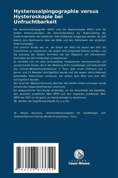 Die Hysterosalpingografie (HSG) und die Hysteroskopie (HSC) sind die beiden Untersuchungen, die klassischerweise zur Untersuchung der Gebärmutterhöhle bei weiblicher Unfruchtbarkeit eingesetzt werden. Es gibt jedoch eine Kontroverse über die Rolle und den Stellenwert der einzelnen Untersuchungen. Ziel unserer Studie war es, die Daten der HSG mit denen der HSC bei Patientinnen zu vergleichen, die wegen Unfruchtbarkeit betreut wurden, und die Leistung der beiden Techniken bei der Diagnose von intrauterinen Anomalien bei Unfruchtbarkeit zu bestimmen.Es handelte sich um eine retrospektive, longitudinale, monozentrische und vergleichende Studie, die in der Abteilung B für Gynäkologie und Geburtshilfe des Charles-Nicolle-Krankenhauses in Tunis über einen Zeitraum von 7 Jahren und 10 Monaten durchgeführt wurde und die wegen Unfruchtbarkeit behandelte Patientinnen umfasste, bei denen eine HSG und eine HSC durchgeführt wurden.Der Grad der Übereinstimmung zwischen den beiden Untersuchungenwurde anhand des Kappa-Koeffizienten untersucht.Ein diagnostischer Test wurde verwendet, um die Sensitivität, die Spezifität, den positiven prädiktiven Wert (PPV) und den negativen prädiktiven Wert (NPV) der HSG im Vergleich zur Hysteroskopie zu bestimmen.Wir wählten die Signifikanzschwelle für p 5%.