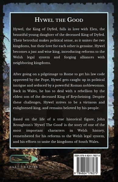 Hywel, the King of Dyfed, falls in love with Elen, the beautiful young daughter of the deceased King of Dyfed. Their betrothal makes political sense, as it unites the two kingdoms, but their love for each other is genuine. Hywel becomes a just and wise king, introducing reforms to the Welsh legal system and forging alliances with neighboring kingdoms. After going on a pilgrimage to Rome to get his law code approved by the Pope, Hywel gets caught up in political intrigue and seduced by a powerful Roman noblewoman. Back in Wales, he has to deal with a rebellion by the eldest son of the deceased King of Brycheiniog. Despite these challenges, Hywel strives to be a virtuous and enlightened king, and remains beloved by his people. Based on the life of a true historical figure, John Broughton's 'Hywel The Good' is the story of one of the most important characters in Welsh history, remembered for his reforms to the Welsh legal system, and his efforts to unite the kingdoms of South Wales.