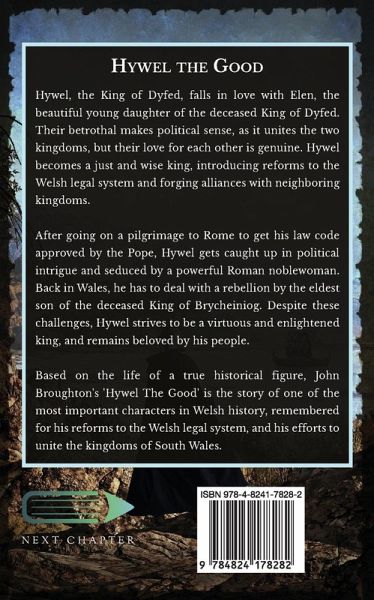 Hywel, the King of Dyfed, falls in love with Elen, the beautiful young daughter of the deceased King of Dyfed. Their betrothal makes political sense, as it unites the two kingdoms, but their love for each other is genuine. Hywel becomes a just and wise king, introducing reforms to the Welsh legal system and forging alliances with neighboring kingdoms. After going on a pilgrimage to Rome to get his law code approved by the Pope, Hywel gets caught up in political intrigue and seduced by a powerful Roman noblewoman. Back in Wales, he has to deal with a rebellion by the eldest son of the deceased King of Brycheiniog. Despite these challenges, Hywel strives to be a virtuous and enlightened king, and remains beloved by his people. Based on the life of a true historical figure, John Broughton's 'Hywel The Good' is the story of one of the most important characters in Welsh history, remembered for his reforms to the Welsh legal system, and his efforts to unite the kingdoms of South Wales.