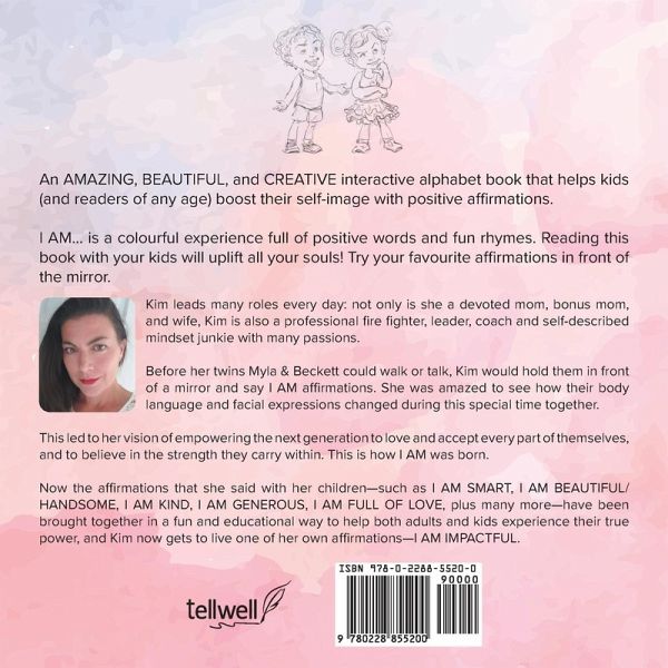 Kim leads many roles every day: not only is she a devoted mom, bonus mom, and wife, Kim is also a professional fire fighter, leader, coach and self-described mindset junkie with many passions.Before her twins Myla & Beckett could walk or talk, Kim would hold them in front of a mirror and say I AM affirmations. She was amazed to see how their body language and facial expressions changed during this special time togetherThis led to her vision of empowering the next generation to love and accept every part of themselves, and to believe in the strength they carry within. This is how I AM was born.Now the affirmations that she said with her children-such as I AM SMART, I AM BEAUTIFUL/HANDSOME, I AM KIND, I AM GENEROUS, I AM FULL OF LOVE, plus many more-have been brought together in a fun and educational way to help both adults and kids experience their true power, and Kim now gets to live one of her own affirmations-I AM IMPACTFUL.