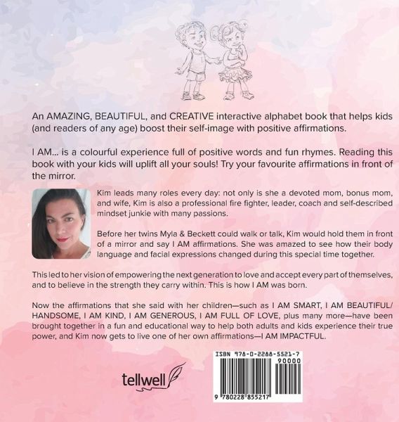 Kim leads many roles every day: not only is she a devoted mom, bonus mom, and wife, Kim is also a professional fire fighter, leader, coach and self-described mindset junkie with many passions.Before her twins Myla & Beckett could walk or talk, Kim would hold them in front of a mirror and say I AM affirmations. She was amazed to see how their body language and facial expressions changed during this special time togetherThis led to her vision of empowering the next generation to love and accept every part of themselves, and to believe in the strength they carry within. This is how I AM was born.Now the affirmations that she said with her children-such as I AM SMART, I AM BEAUTIFUL/HANDSOME, I AM KIND, I AM GENEROUS, I AM FULL OF LOVE, plus many more-have been brought together in a fun and educational way to help both adults and kids experience their true power, and Kim now gets to live one of her own affirmations-I AM IMPACTFUL.