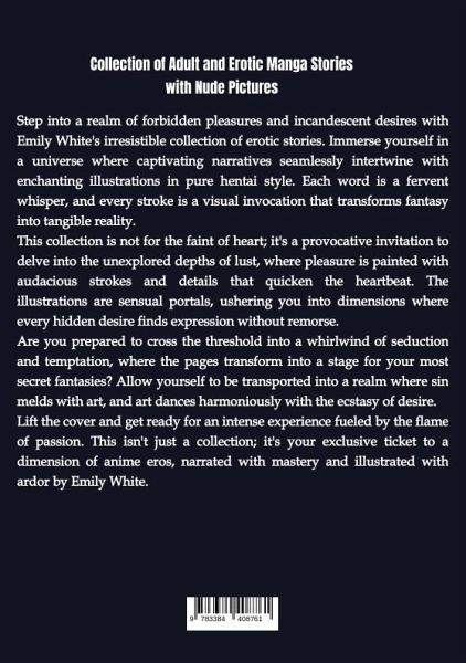 Indulge in an Unforgettable Journey of Passion and Temptation with Emily White's Erotic Masterpiece!Step into a captivating world where seduction knows no bounds in Emily White's latest collection of scintillating erotic stories, enriched with enchanting hentai illustrations. Immerse yourself in a universe where each word is a whispered promise, and every brushstroke is a visual enchantment that brings fantasies to life in pure hentai style.This collection is a daring invitation to explore the uncharted depths of desire, where pleasure unfolds with audacious strokes and details that will quicken your heartbeat. The carefully crafted hentai illustrations serve as sensuous portals, transporting you into dimensions where every hidden fantasy finds unabashed expression.What to Expect:- A Fusion of Literary Mastery and Sensual Artistry- Explicit and Alluring Hentai Illustrations- Stories That Explore the Boundaries of Lust and Fantasy- A Whirlwind of Seduction and TemptationThis isn'tjust a collection; it's your exclusive ticket to a dimension of hentai eros, meticulously narrated and ardently illustrated by Emily White. Lift the cover and prepare for an intense experience fueled by the flame of passion.Caution: This Collection is Not for the Faint of Heart. Are You Ready to Cross the Threshold?