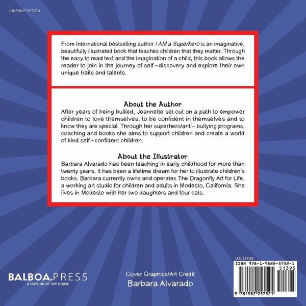 From International bestselling author I AM a Superhero is an imaginative, beautifully illustrated book that teaches children that they matter. Through the easy to read text and the imagination of a child, this book allows the reader to join in the journey of self-discovery and explore their own unique traits and talents.