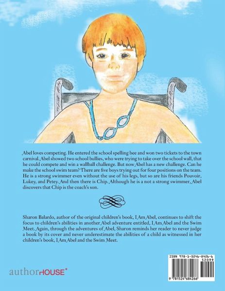 Abel loves competing. He entered the school spelling bee and won two tickets to the town carnival. Abel showed two school bullies, who were trying to take over the school wall, that he could compete and win a wallball challenge. But now Abel has a new challenge. Can he make the school swim team? There are five boys trying out for four positions on the team. He is a strong swimmer even without the use of his legs, but so are his friends Pouvoir, Lukey, and Petey. And then there is Chip. Although he is a not a strong swimmer, Abel discovers that Chip is the coach's son.