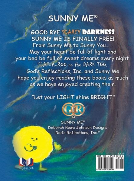 Sunny Me GOOD BYE SCAREY DARKNESS SUNNY ME IS FINALLY FREE! From Sunny Me to Sunny you..... May you heart be full of light and your bed full of sweet dreams every night. SLAP-A-ROO on the DARK TOO. God's Reflections, Inc. and Sunny Me Hope you enjoy reading these books as much as we have enjoyed creating them. "Let your LIGHT shine BRIGHT."