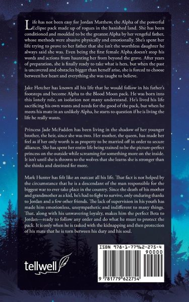 Life has not been easy for Jordan Matthew, the Alpha of the powerful Eclipse pack made up of rogues in the banished land. She has been conditioned and moulded to be the greatest Alpha by her vengeful father, whose methods were abusive physically and emotionally. She's spent her life trying to prove to her father that she isn't the worthless daughter he always said she was. Even being the first female Alpha doesn't stop his words and actions from haunting her from beyond the grave. After years of preparation, she is finally ready to take what is hers, but when the past is uncovered and obstacles bigger than herself arise, she is forced to choose between her heart and everything she was taught to believe. Jake Fletcher has known all his life that he would follow in his father's footsteps and become Alpha to the Blood Moon pack. He was born into this lonely role, an isolation not many understand. He's lived his life sacrificing his own wants and needs for the good of the pack, but when he meets his mate in an unlikely Alpha, he starts to question if he is living the life he really wants. Princess Jade McFadden has been living in the shadow of her younger brother, the heir, since she was two. Her mother, the queen, has made her feel as if her only worth is as property to be married off in order to secure alliances. She has spent her entire life being trained to be the picture-perfect princess on the outside while screaming for something more on the inside. It isn't until she is thrown to the wolves that she learns she is stronger than she thinks and destined for more. Mark Hunter has felt like an outcast all his life. That fact is not helped by the circumstance that he is a descendant of the man responsible for the biggest war to ever take place in the country. Since the death of his mother and grandmother as a kid, he's had to fi ght to survive, only enduring thanks to Jordan and a few other friends. The lack of supervision in his youth has made him emotionless, unsympathetic and indifferent to many things. That, along with his unwavering loyalty, makes him the perfect Beta to Jordan-ready to follow any order and do what he must to protect the pack. It is only when he is tasked with the kidnapping and then protection of his mate that he is torn between his duty and his soul.