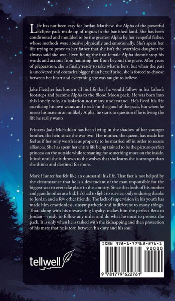 Life has not been easy for Jordan Matthew, the Alpha of the powerful Eclipse pack made up of rogues in the banished land. She has been conditioned and moulded to be the greatest Alpha by her vengeful father, whose methods were abusive physically and emotionally. She's spent her life trying to prove to her father that she isn't the worthless daughter he always said she was. Even being the first female Alpha doesn't stop his words and actions from haunting her from beyond the grave. After years of preparation, she is finally ready to take what is hers, but when the past is uncovered and obstacles bigger than herself arise, she is forced to choose between her heart and everything she was taught to believe. Jake Fletcher has known all his life that he would follow in his father's footsteps and become Alpha to the Blood Moon pack. He was born into this lonely role, an isolation not many understand. He's lived his life sacrificing his own wants and needs for the good of the pack, but when he meets his mate in an unlikely Alpha, he starts to question if he is living the life he really wants. Princess Jade McFadden has been living in the shadow of her younger brother, the heir, since she was two. Her mother, the queen, has made her feel as if her only worth is as property to be married off in order to secure alliances. She has spent her entire life being trained to be the picture-perfect princess on the outside while screaming for something more on the inside. It isn't until she is thrown to the wolves that she learns she is stronger than she thinks and destined for more. Mark Hunter has felt like an outcast all his life. That fact is not helped by the circumstance that he is a descendant of the man responsible for the biggest war to ever take place in the country. Since the death of his mother and grandmother as a kid, he's had to fi ght to survive, only enduring thanks to Jordan and a few other friends. The lack of supervision in his youth has made him emotionless, unsympathetic and indifferent to many things. That, along with his unwavering loyalty, makes him the perfect Beta to Jordan-ready to follow any order and do what he must to protect the pack. It is only when he is tasked with the kidnapping and then protection of his mate that he is torn between his duty and his soul.